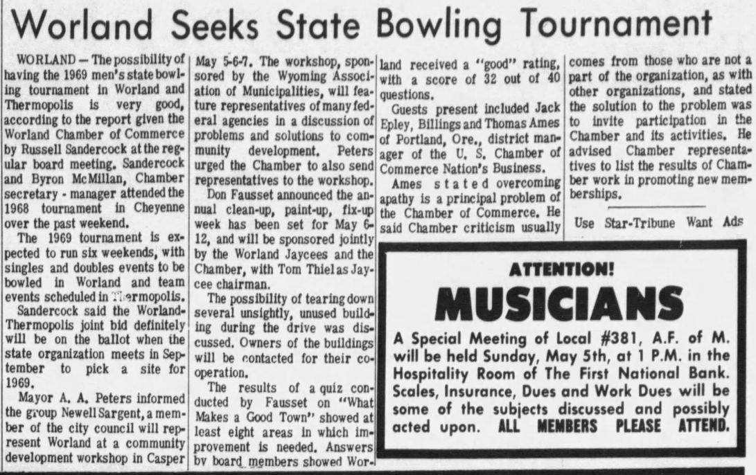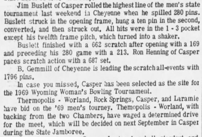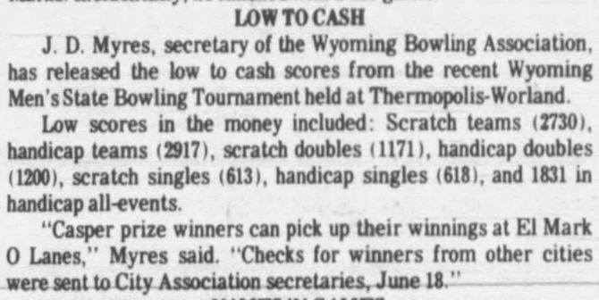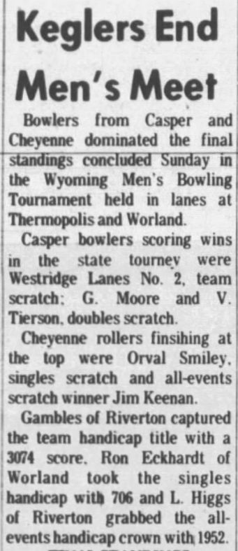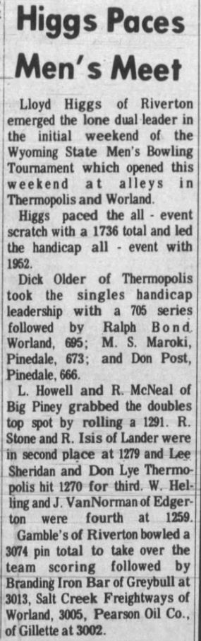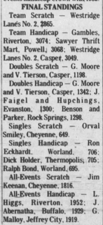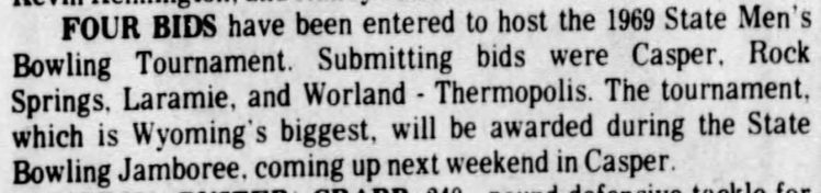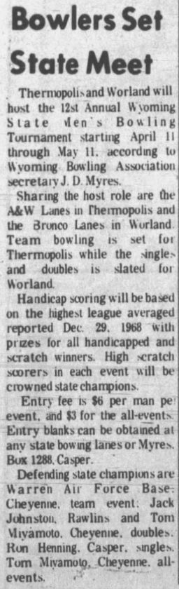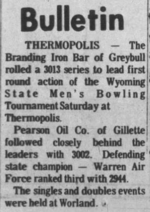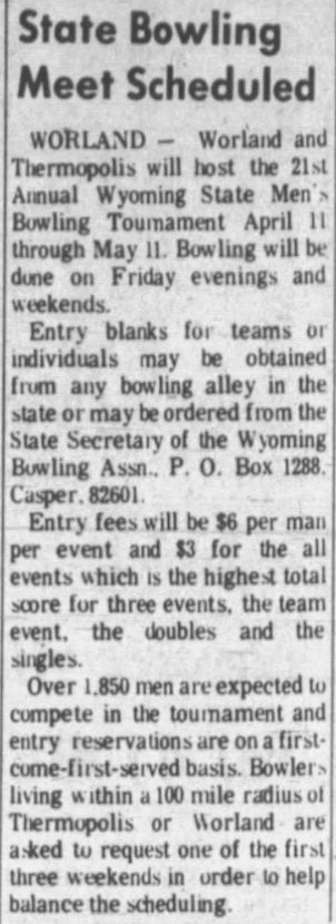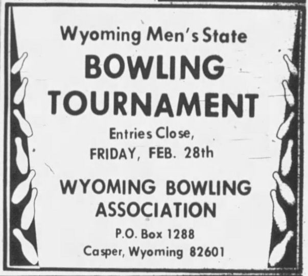 21st Annual Wyoming Men's State Bowling Tournament, Thermopolis & Worland WY