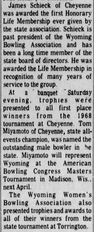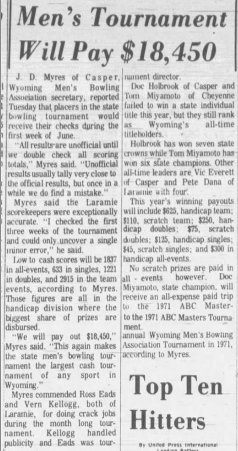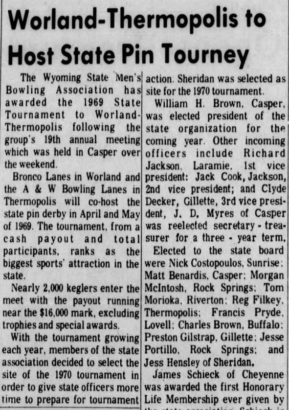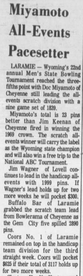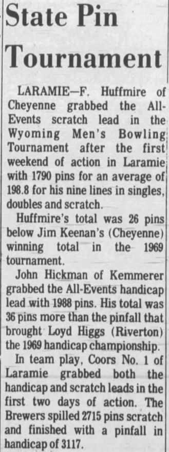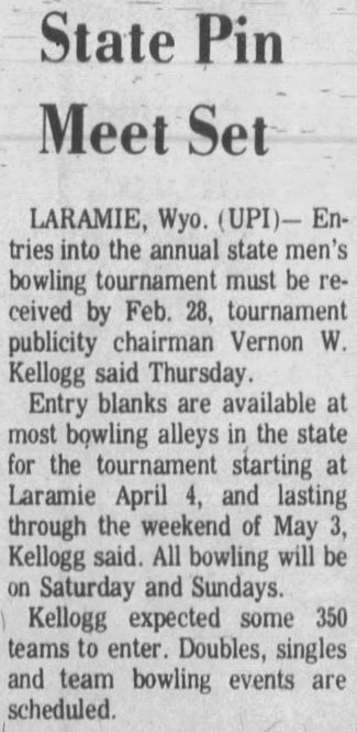 22nd Annual Wyoming Men's State Bowling Tournament, Laramie WY